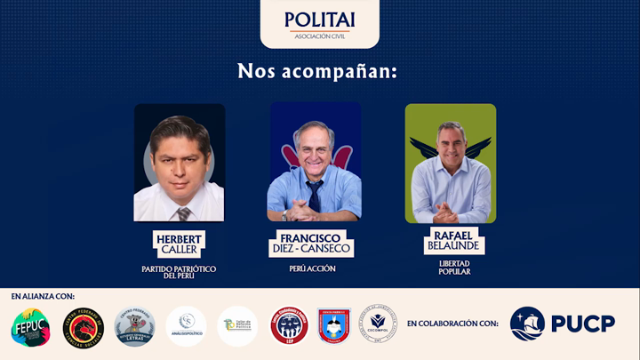 ... En esta tercera mesa nos acompañan: Herbert Caller (Partido Patriótico del Perú) Francisco Diez-Canseco (Perú Acción) Rafael ...tica y Gobernabilidad (UNAMBA) FEPUCP, Radio Poder Joven (UCSM), NOGLO (USIL) y CECOMPOL (UNT)...